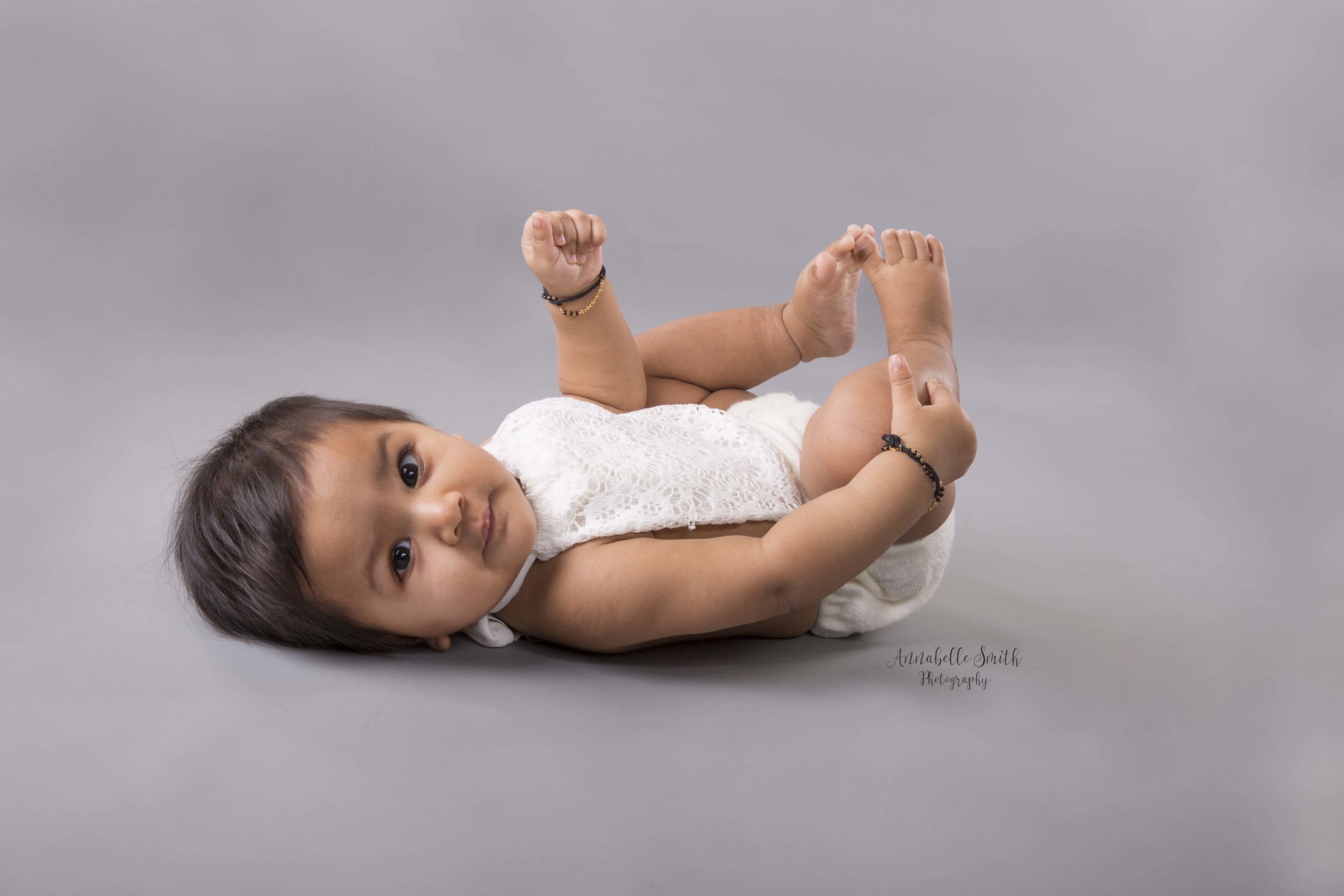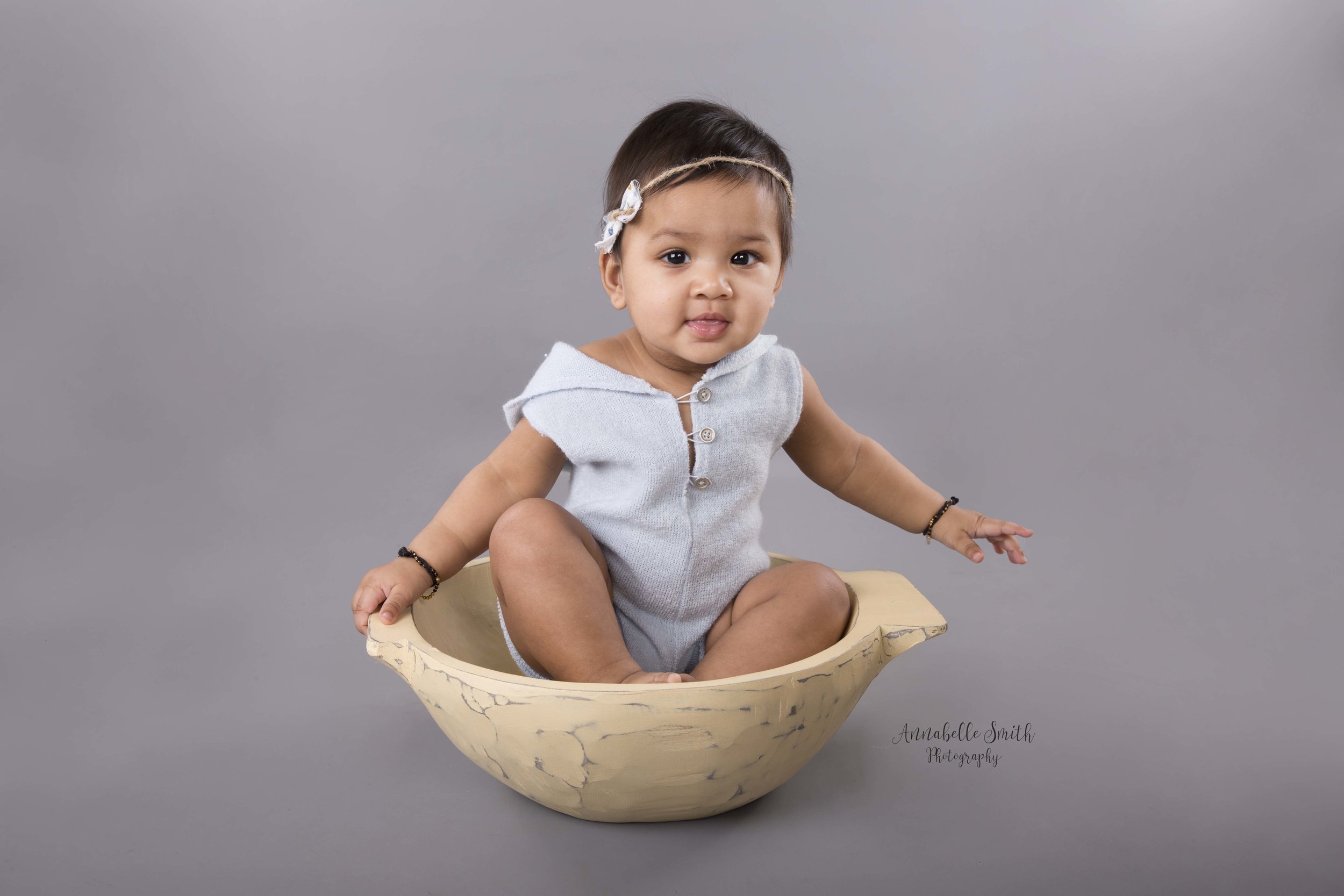 Now Bella is sitting up at a cheeky 7 months and I loved having her back in the studio, she was so comfortable in the studio we were capturing a cute ‘baby bum’ shot of her and she wasn’t fussed that she couldn’t see myself or mummy!, laughing posing and playing with props she laid in as a newborn. We kept to the same tones so that her artwork flows throughout her growth