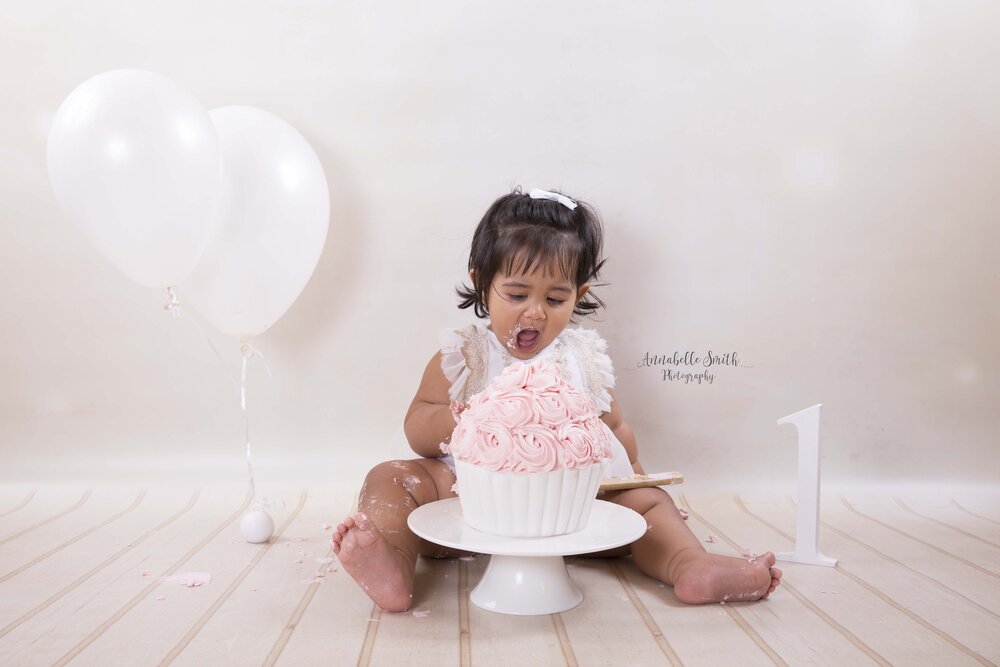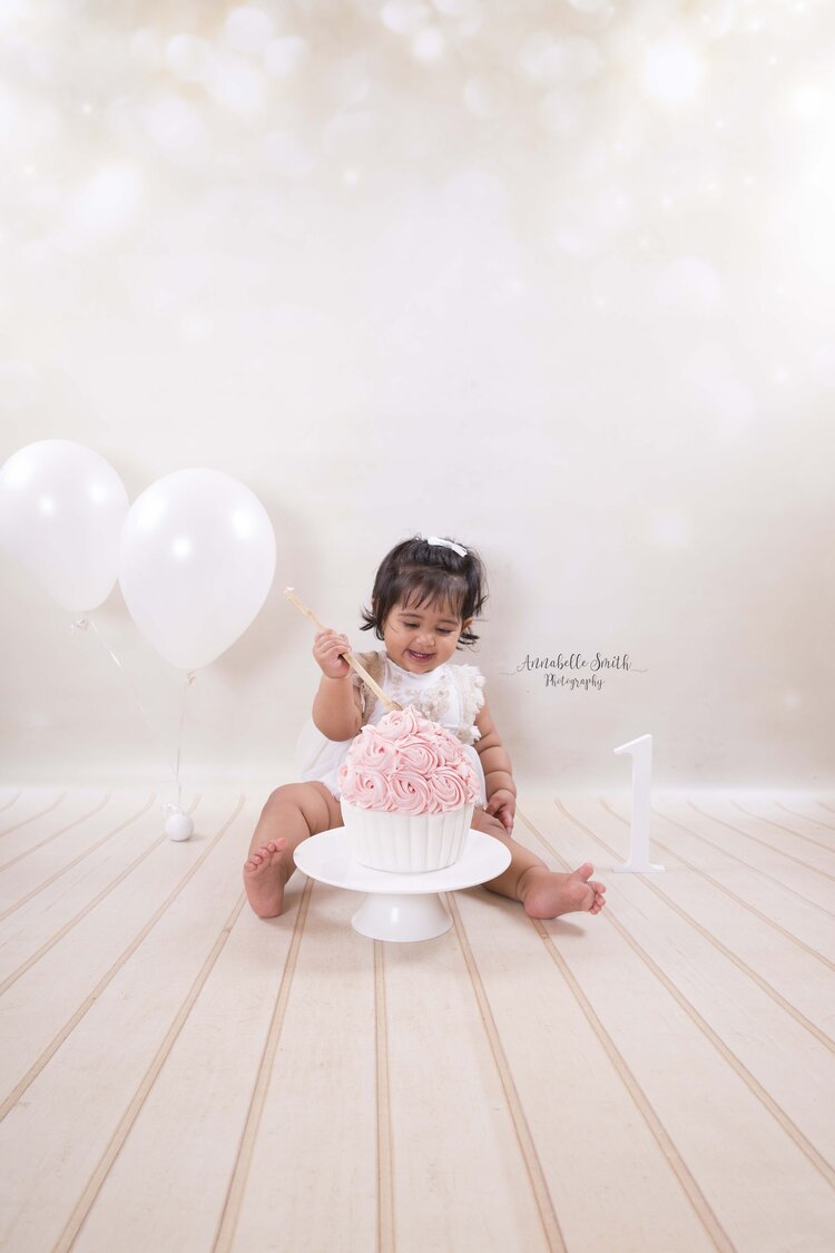 Cake smashes have been one of my most popular sessions in my Walton on Thames photography studio, this is a session that can easily be completed with social distancing measures as parents love to get involved and create gorgeous artwork for their milestone! I have cakes delivered with a no contact process from a local cake maker- Cake Sensations and all the props and backdrops are plastic or vinyl so they are deep cleaned after each session for your safety.
