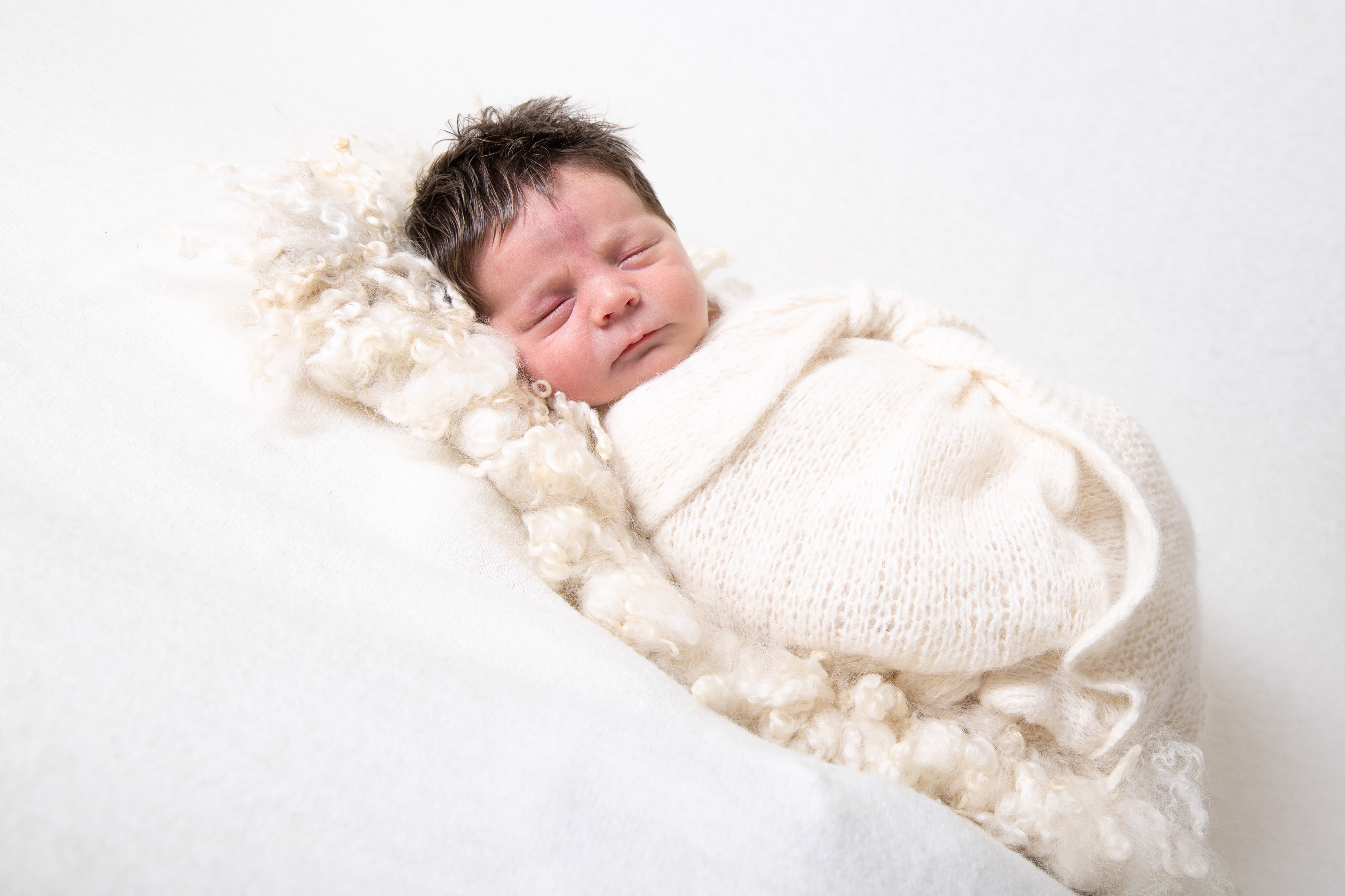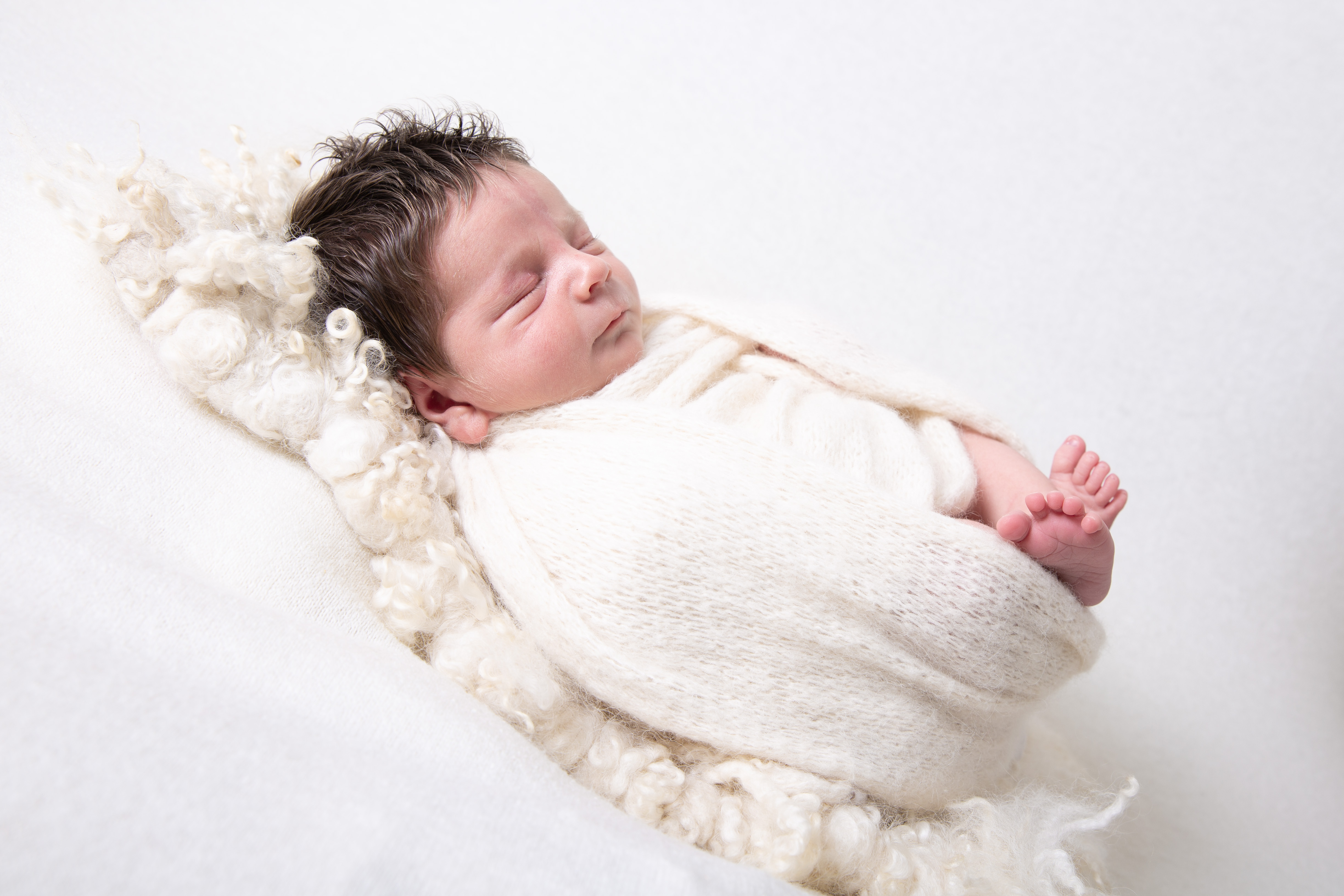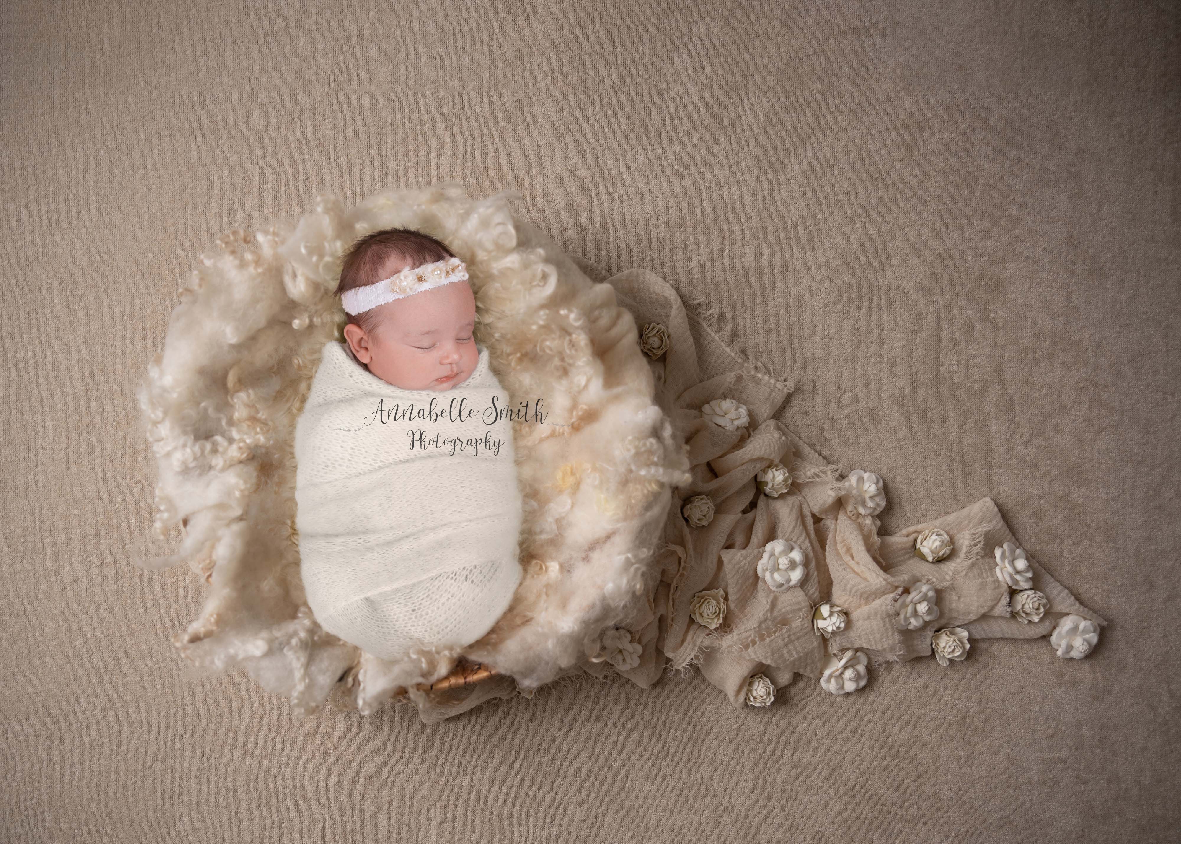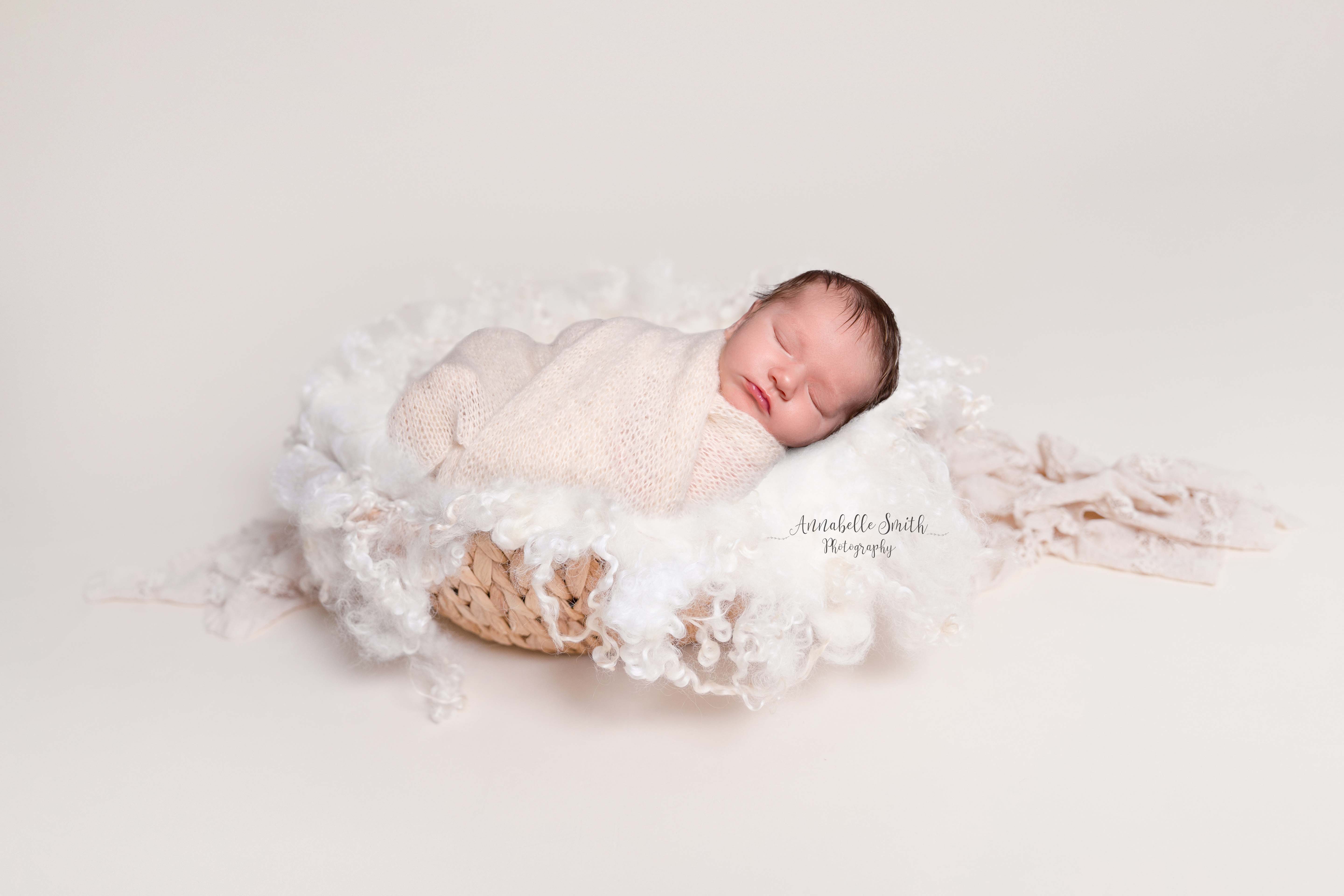The studio is always lovely and warm for your newborn and we start the session in a full swaddle with the nappy on so we do not wake them. This is a perfect opportunity for family and sibling photographs also.